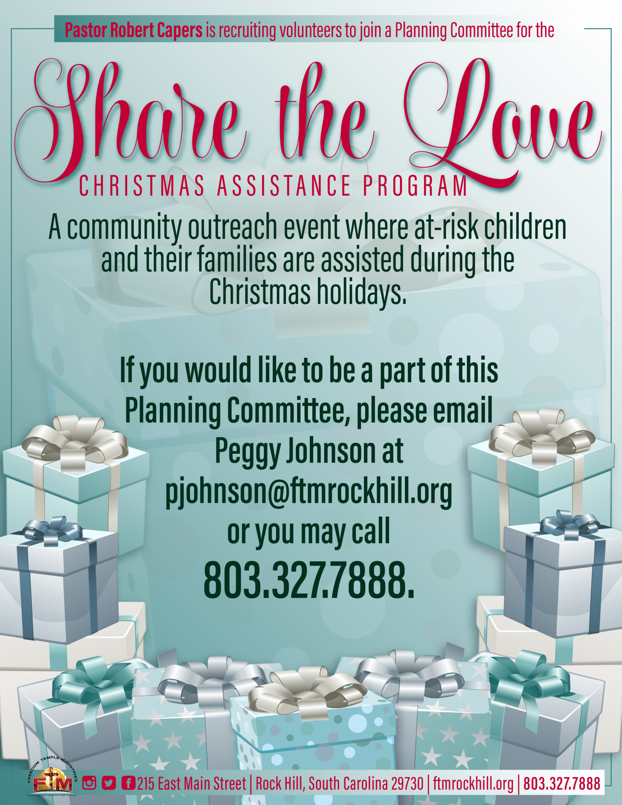 Volunteers Needed for the "Share the Love Christmas Assistance Program." If you would like to volunteer by being a part of the Planning Committee, let us know.