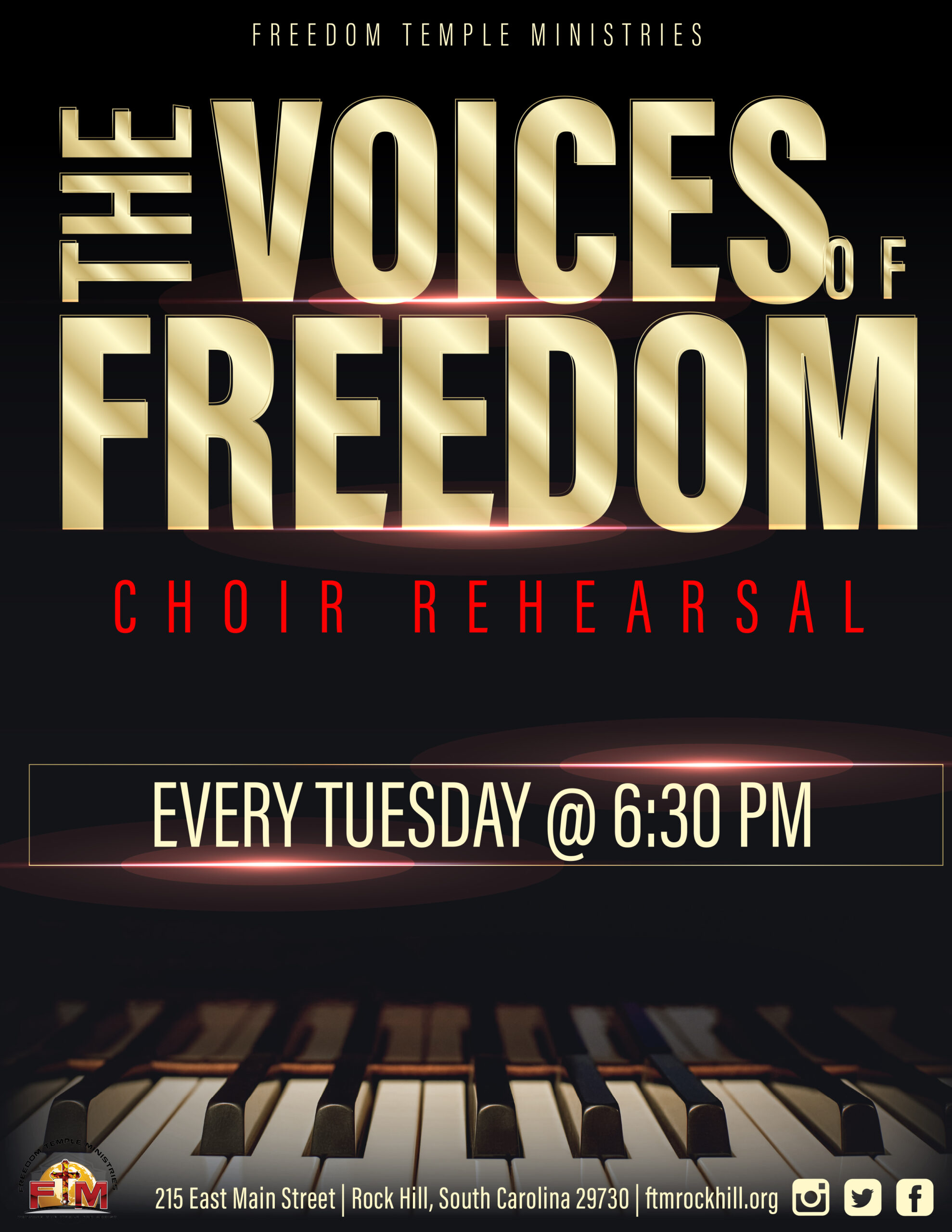 Voices of Freedom / Praise Team Rehearsals Every Monday at 7pm at Freedom Temple Ministries |