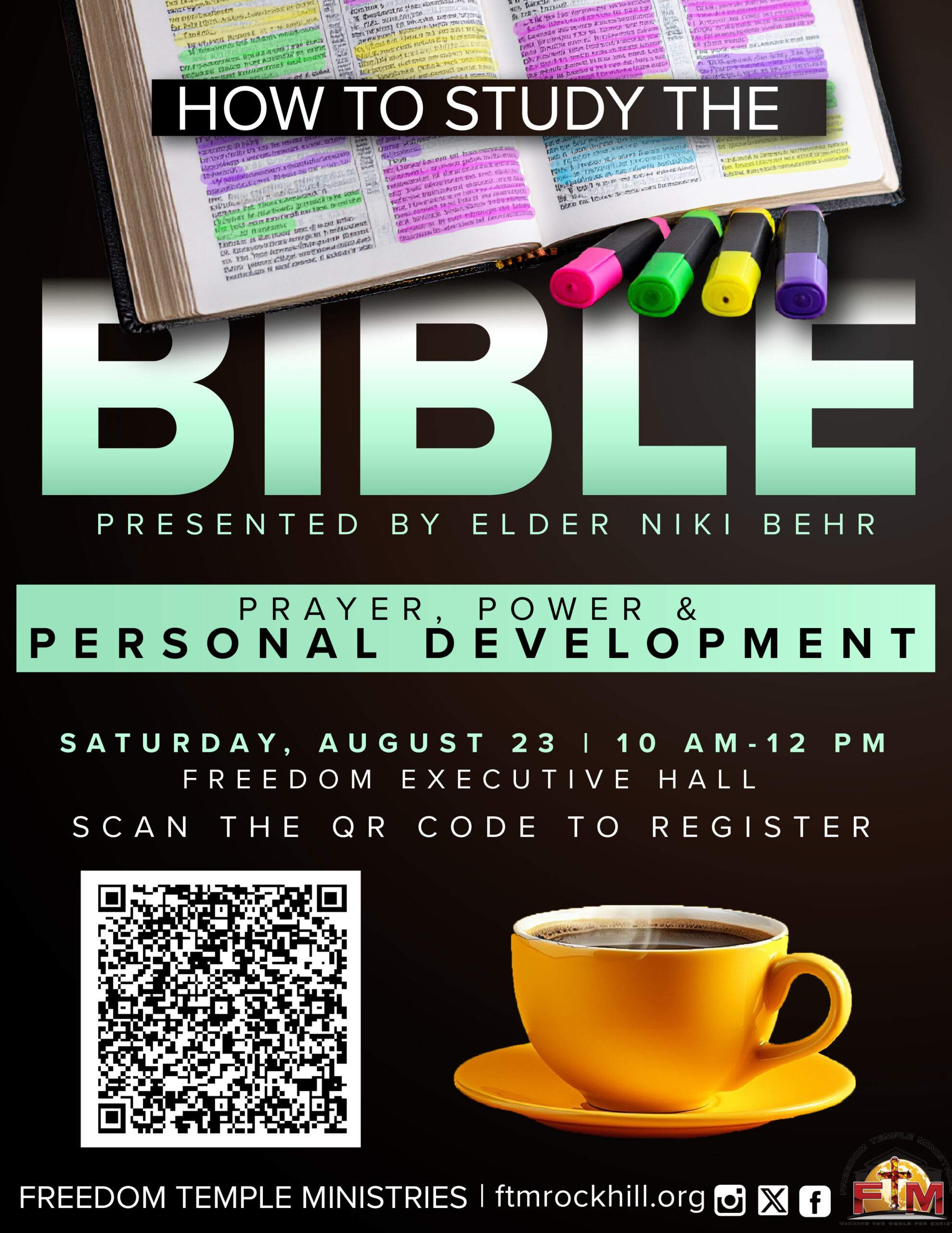"How to Study the Bible" with Elder Niki Behr, Saturday, August 23rd at 10am. |