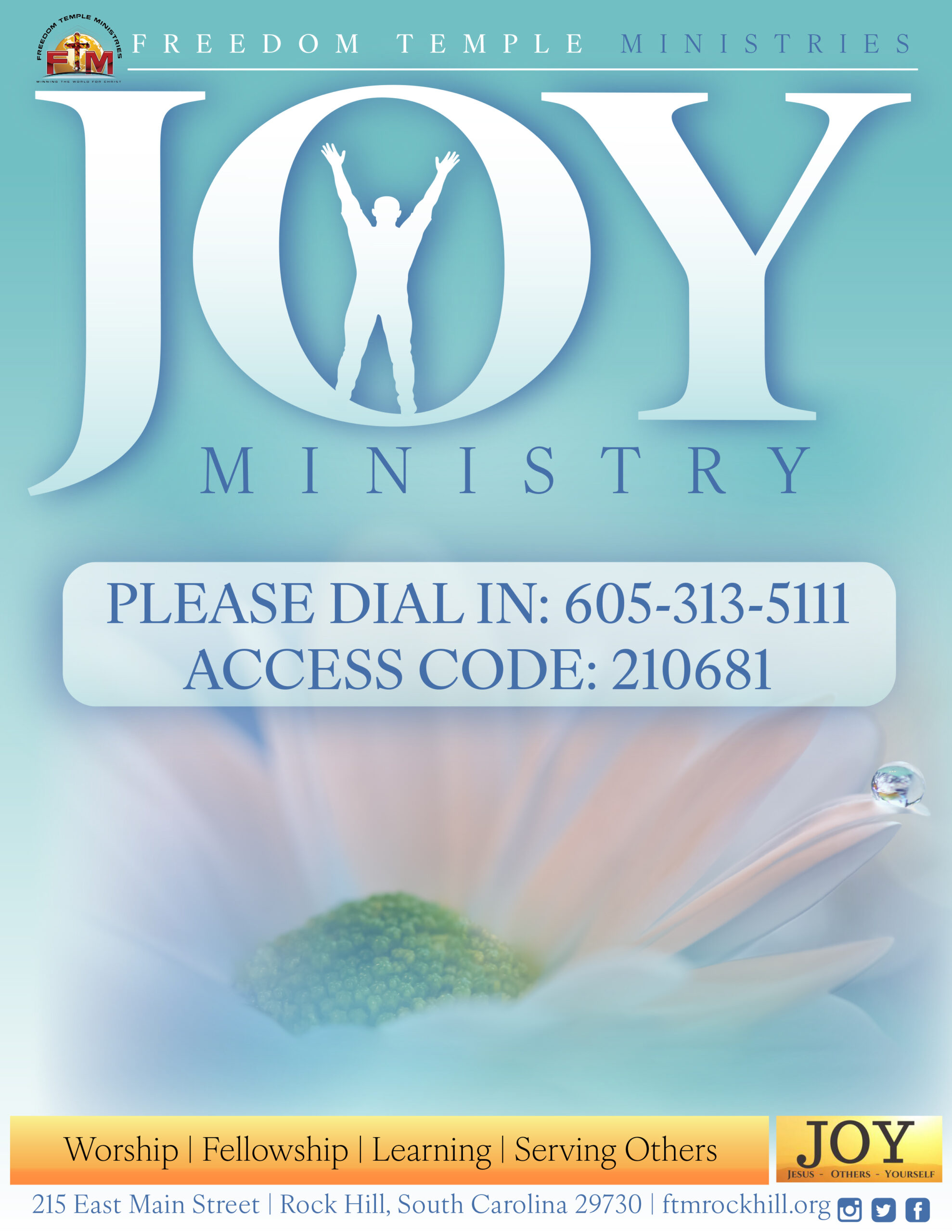 Intercessory Prayer Ministry, Weekly Prayer Calls: Tuesdays morning 6am - 6:30 am and Thursday evenings 6pm-6:30 pm. 712.432.3900, Access Code: 174705 |